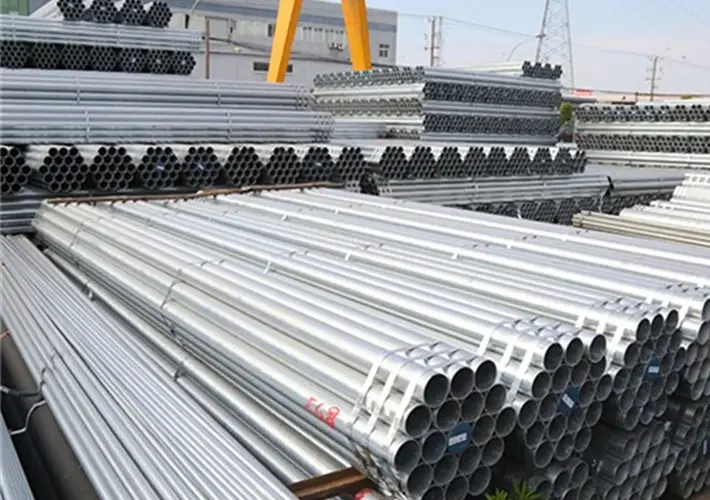 Galvanized steel pipes have a protective zinc coating to prevent rust and corrosion.